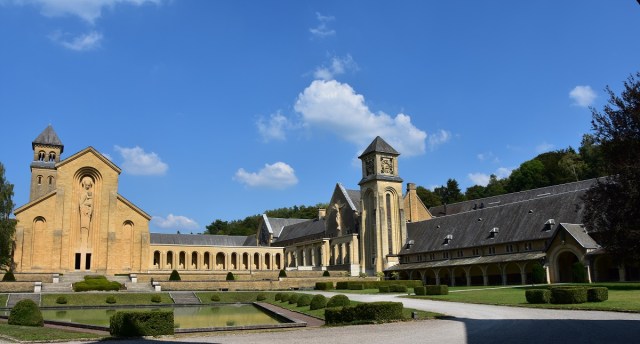 Orval, 9 siècles d’hospitalité cistercienne : L’histoire de cette prestigieuse abbaye commence en 1020 quand quelques bénédictins italiens choisissent un vallon pour y bâtir ce qui va vite devenir un haut-lieu de ferveur chrétienne. Plusieurs fois au cœur de la tourmente, l’abbaye renaîtra de ses cendres. C’est en 1926 qu’elle se redresse pour la dernière fois, lorsque des moines cisterciens de Sept-Fons dans l’Allier relèvent les ruines laissées par la Révolution française et créent une brasserie et une fromagerie pour financer la reconstruction. Cette œuvre gigantesque est entreprise sous la houlette d’un moine de l’abbaye de la Trappe à Soligny, Dom Marie-Albert van der Cruyssen, un ancien entrepreneur belge gantois qui deviendra aussi le premier abbé du nouveau monastère. Les plans sont établis par un ami, l’ingénieur-architecte Henry Vaes qui y travaillera durant 20 ans. La nouvelle construction est bâtie sur les vestiges du 18ème siècle. L’abbatiale élevée au rang de basilique est consacrée en 1948.