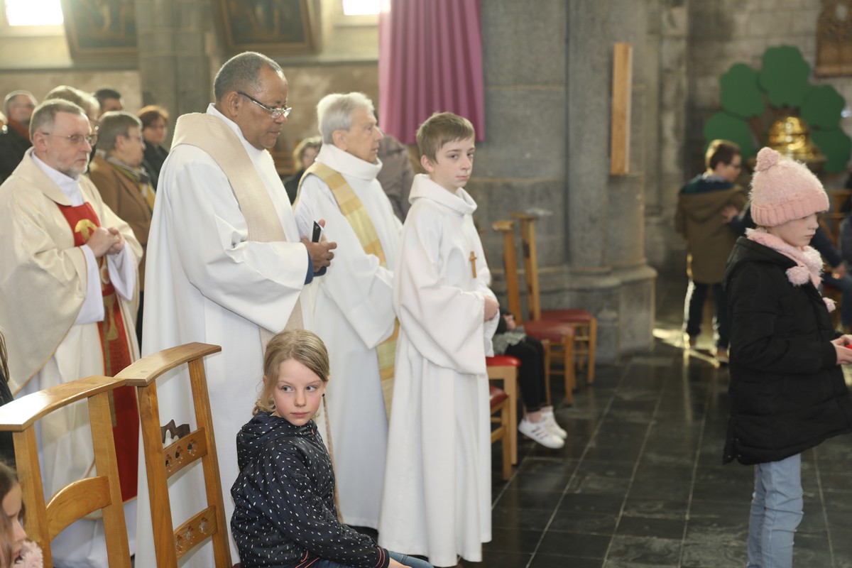 Nos célébrants, l’Abbé Willemet, Père Stanislas et Père François, épaulés par les catéchistes, ont fait de cette célébration un moment de ferveur et de dévotion.