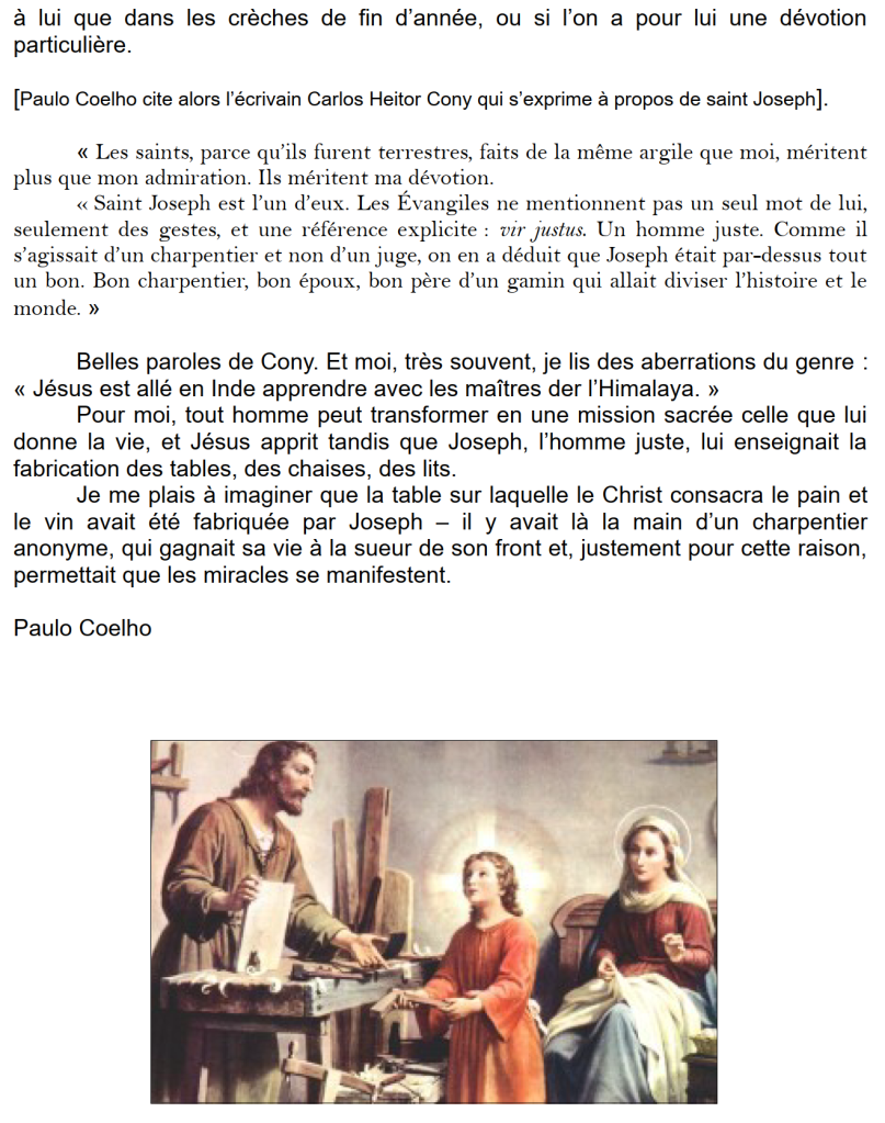 Joseph répond à l appel et part vers l inconnu. Il suit ses rêves. Il était les 3 , bon charpentier bon époux, bon père. C était un saint terrestre fait avec la même argile que le Seigneur.