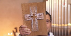Quelques jours avant Pâques, j’ai été l’heureux destinataire d’une carte très sympathique : elle accompagnait une jolie croix dessinée sur une planche avec quelques clous reliés entre eux par une ficelle. Cette croix est l’œuvre de Simon. Il a 10 ans et il aurait dû être baptisé dimanche dernier. En bas de la carte, il a écrit : « Gros bisous contagieux ». Merci Simon.